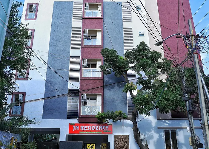 O hotel Jn Residency Perungudi Acomodação com café da manhã Chennai, localizado no bairro South Chennai de Chennai, a 3.4 km da Praia de Thiruvanmiyur, oferece carros para alugar. Este hotel oferece Wi-Fi na propriedade, bem como câmbio de moeda e lareira ao ar livre.